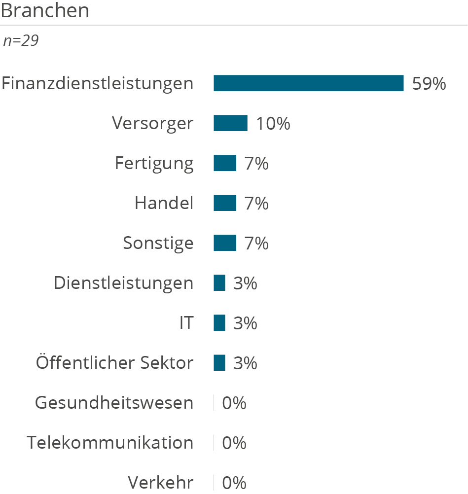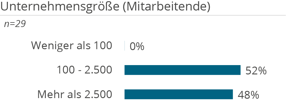 Die folgenden Demografie-Grafiken zeigen neben Kundendemografie (Unternehmensgröße und Branche), die Unterstützung der Kunden aufgeteilt nach Tätigkeiten in D&A Themenbereichen, erbrachten Services sowie eingesetzten Technologien.