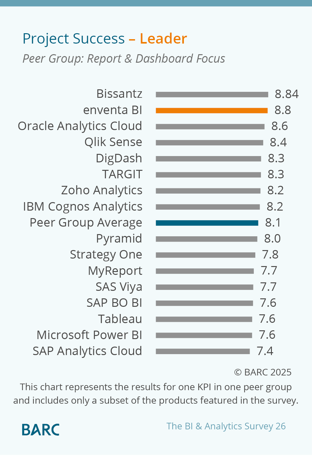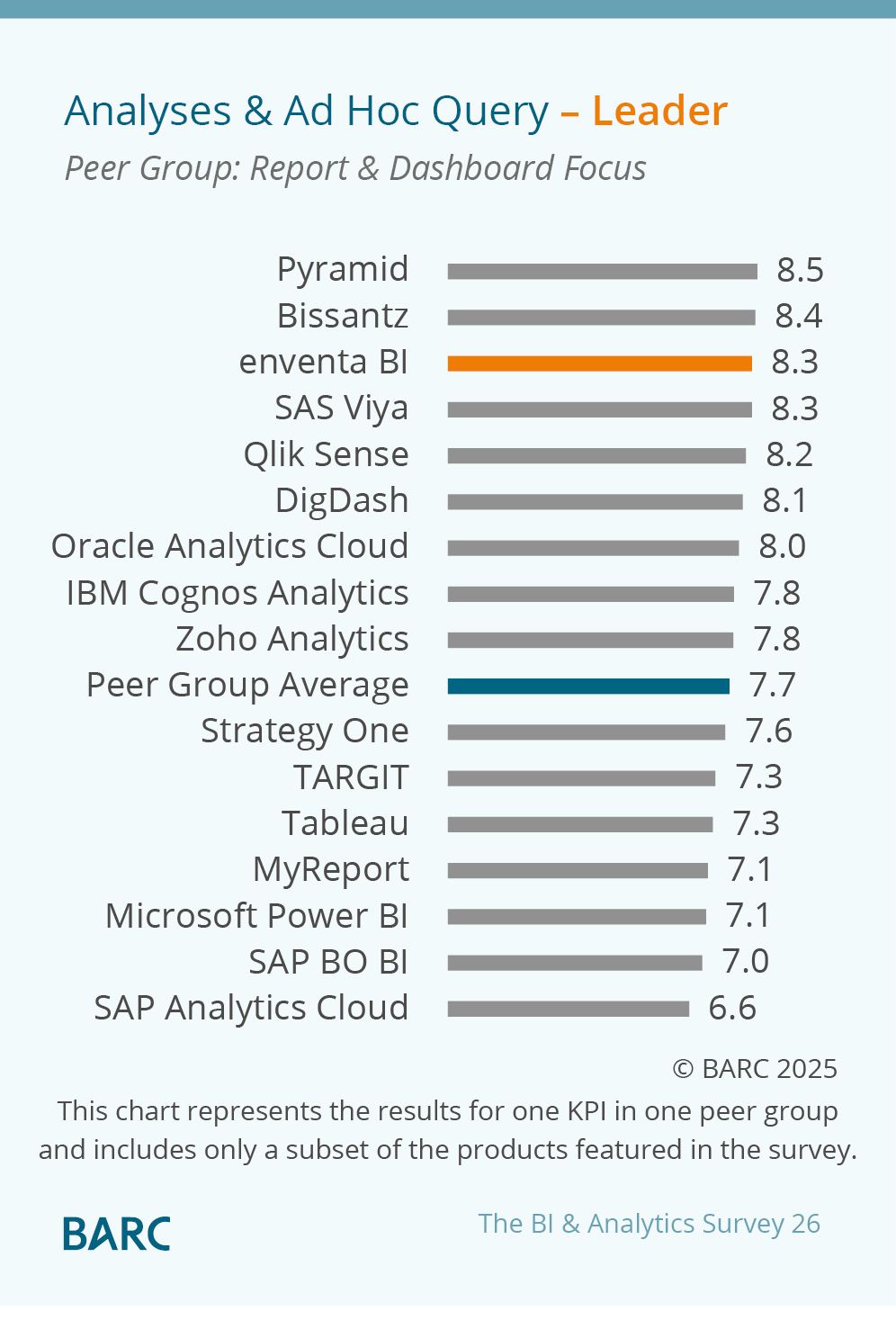 Die vollständigen User-Bewertungen und KPI-Ergebnisse für enventa Group enventa BI