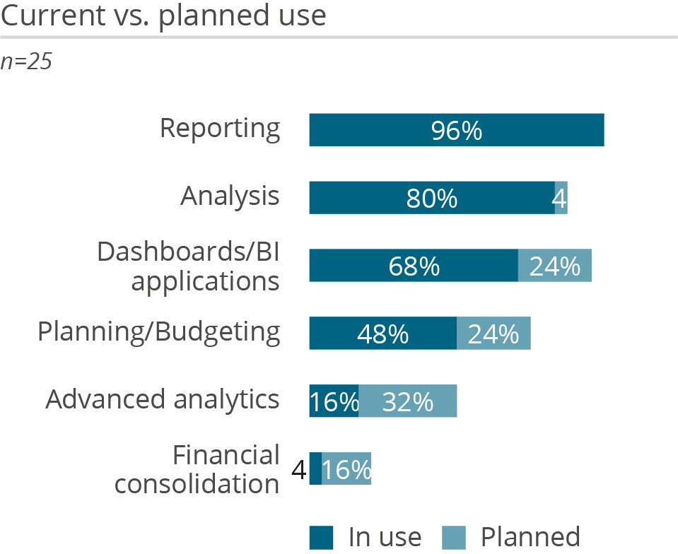 BI-Lösung mit Fokus auf Erstellung von Reports, Dashboards (auch IoT-Umfeld), Analysen und Planungsapplikationen; Scorecard Modul für BSC vorhanden