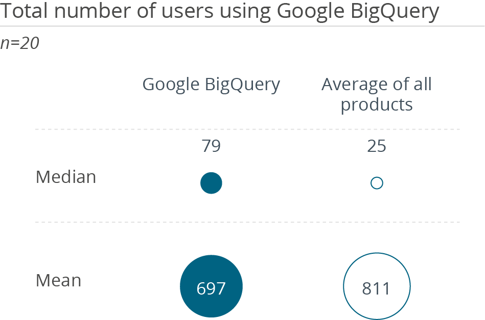 - BigQuery-Kunden sind doppelt so häufig wie der Durchschnitt der Meinung, dass es zu schwierig ist, die Software effektiv zu nutzen.