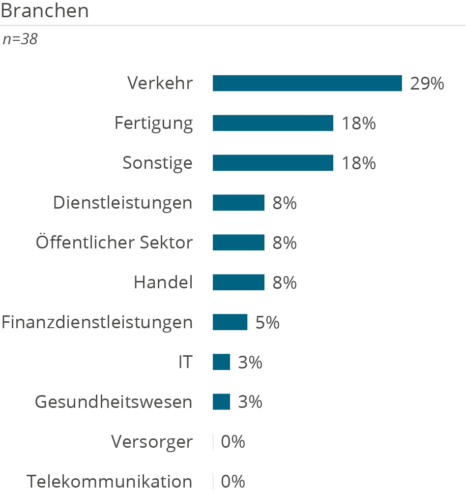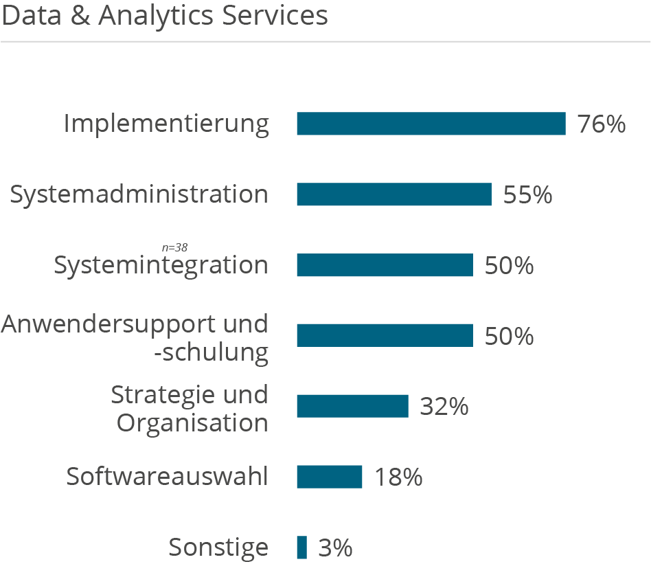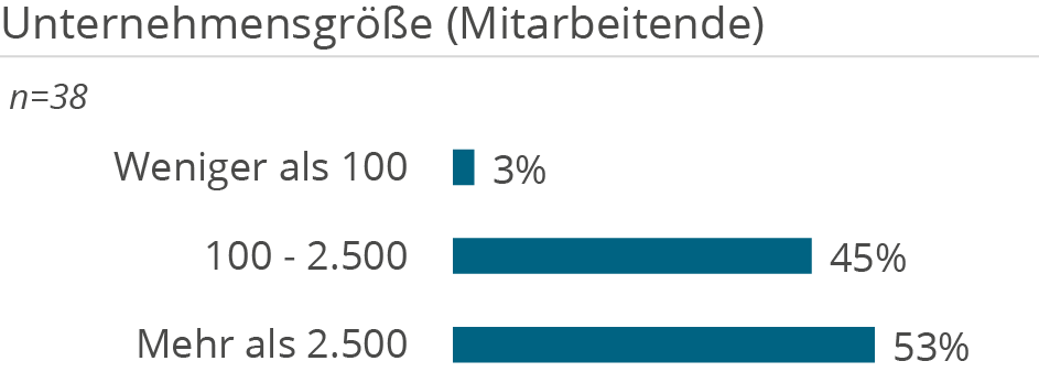 Die folgenden Demografie-Grafiken zeigen neben Kundendemografie (Unternehmensgröße und Branche), die Unterstützung der Kunden aufgeteilt nach Tätigkeiten in D&A Themenbereichen, erbrachten Services sowie eingesetzten Technologien.