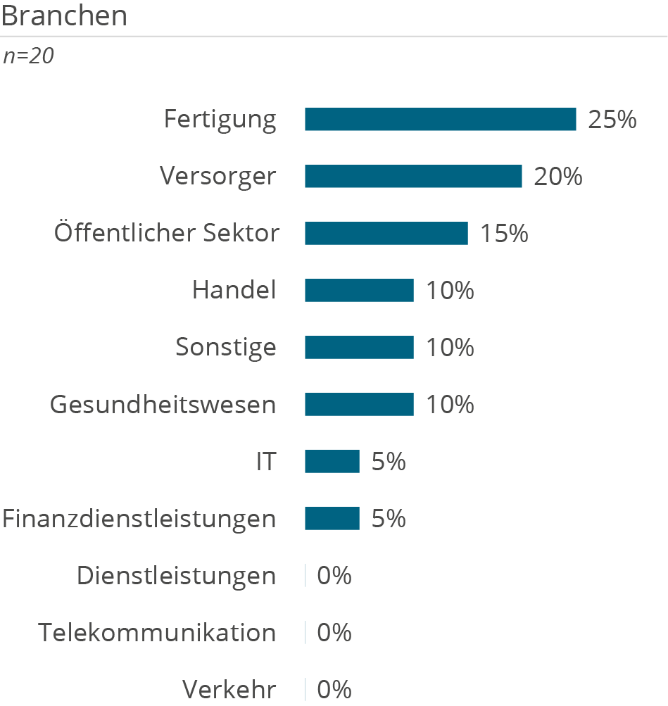 Unsere Auftraggeber stammen aus allen Branchen, beispielsweise Logistik-, Energieversorgungs-, Finanzdienstleistungs- und Industrieunternehmen, aber auch aus der öffentlichen Verwaltung.