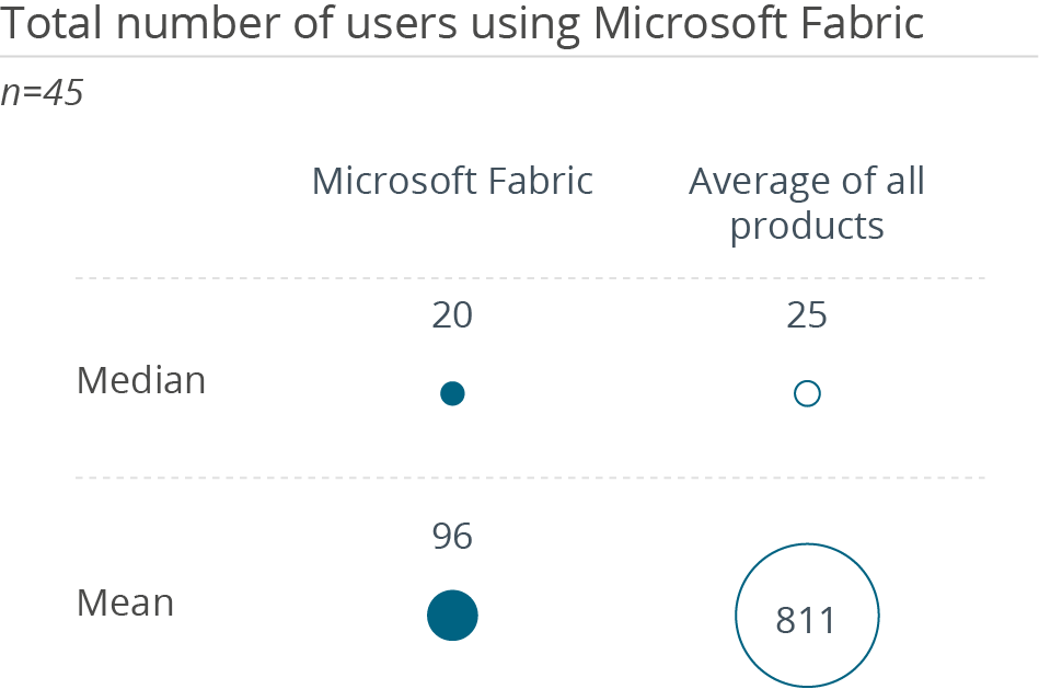 - Die meisten Microsoft Fabric-Kunden kaufen das Produkt, weil sie die Anpassung an ihre bestehende und zukünftige Landschaft und die Konnektivität zu Quell-/Zielsystemen schätzen - ein klares Indiz für die dominierende installierte Basis von Microsoft bei kleinen, mittleren und großen Unternehmen.
