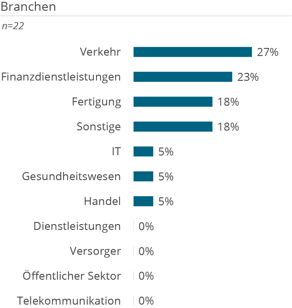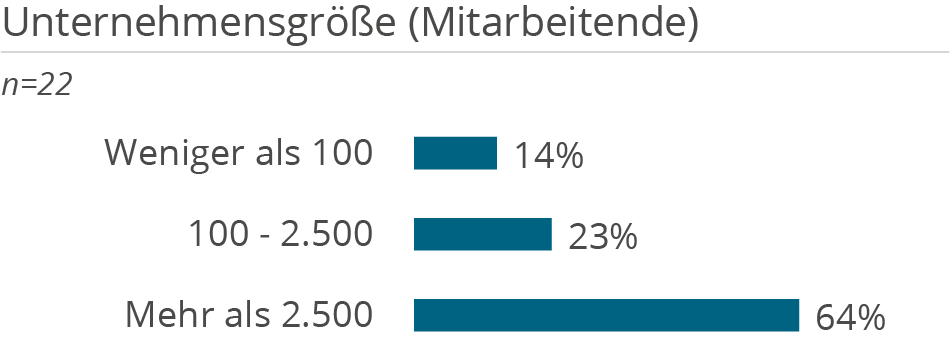 Die folgenden Demografie-Grafiken zeigen neben Kundendemografie (Unternehmensgröße und Branche), die Unterstützung der Kunden aufgeteilt nach Tätigkeiten in D&A Themenbereichen, erbrachten Services sowie eingesetzten Technologien.