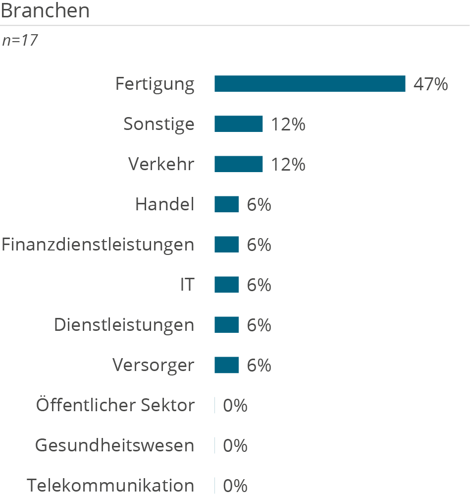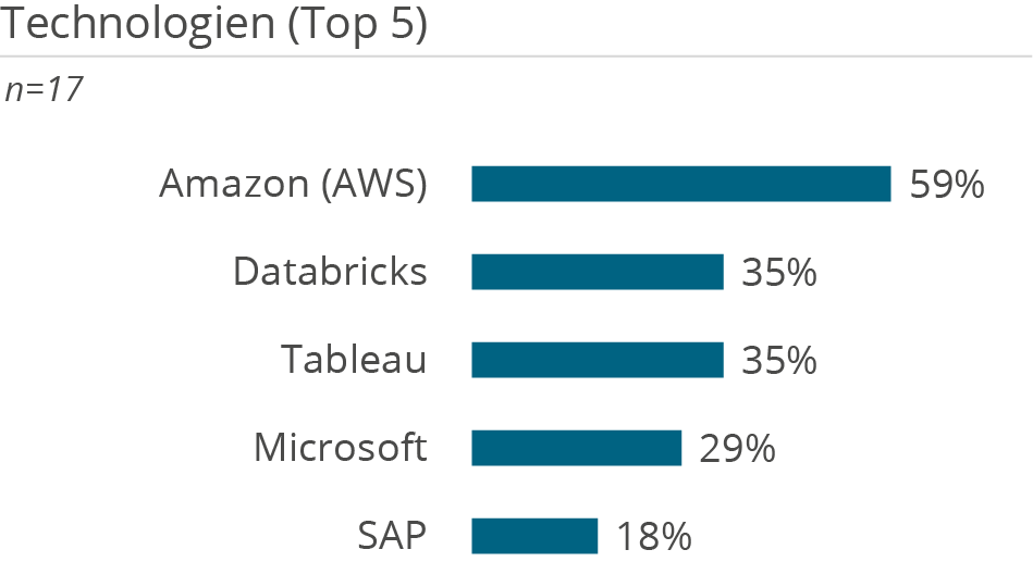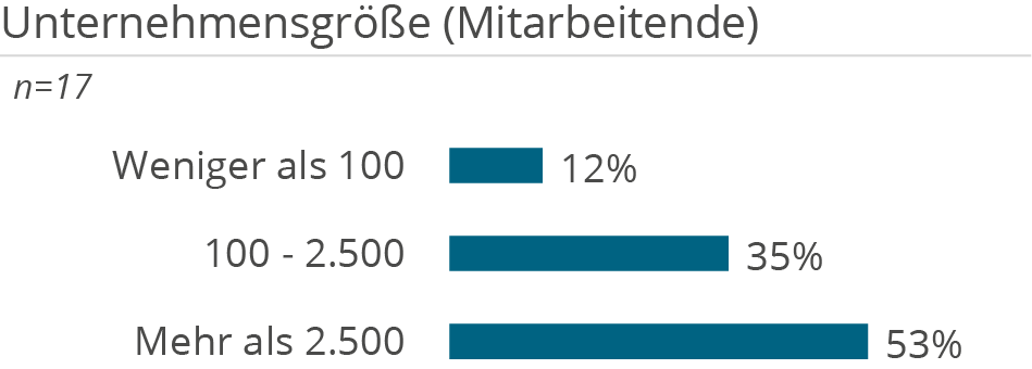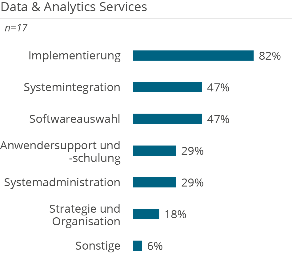Die folgenden Demografie-Grafiken zeigen neben Kundendemografie (Unternehmensgröße und Branche), die Unterstützung der Kunden aufgeteilt nach Tätigkeiten in D&A Themenbereichen, erbrachten Services sowie eingesetzten Technologien.