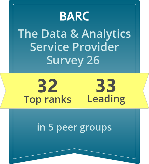 Die Informationen und Kennzahlen entstammen größtenteils der BARC Umfrage The Data & Analytics Service Provider Survey. Mehr Informationen zur Methodik erhalten Sie beim Klick auf den entsprechenden Link.