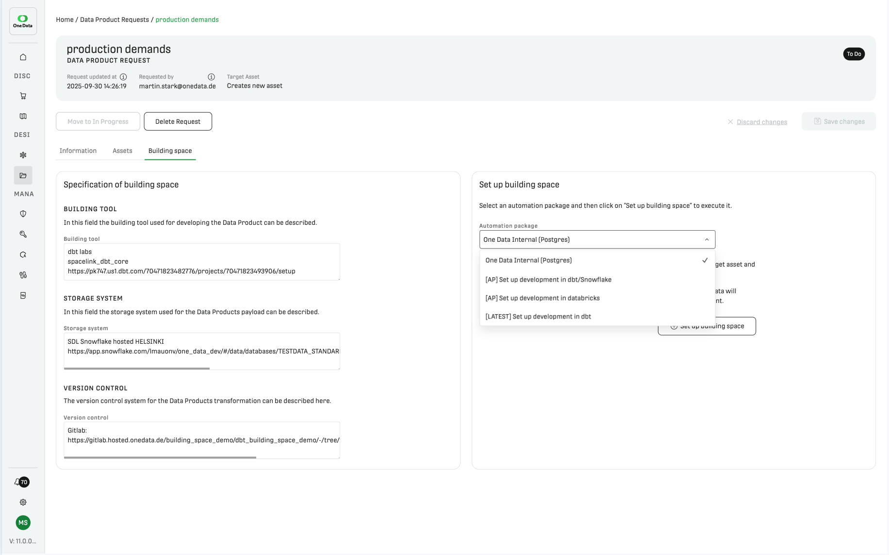 One Data is built to support both data product owners and data consumers. The platform offers tools to facilitate data product requests, helping data product owners to determine the potential business value of a data product and translate the consumers’ requirements into technical specifications for developers.